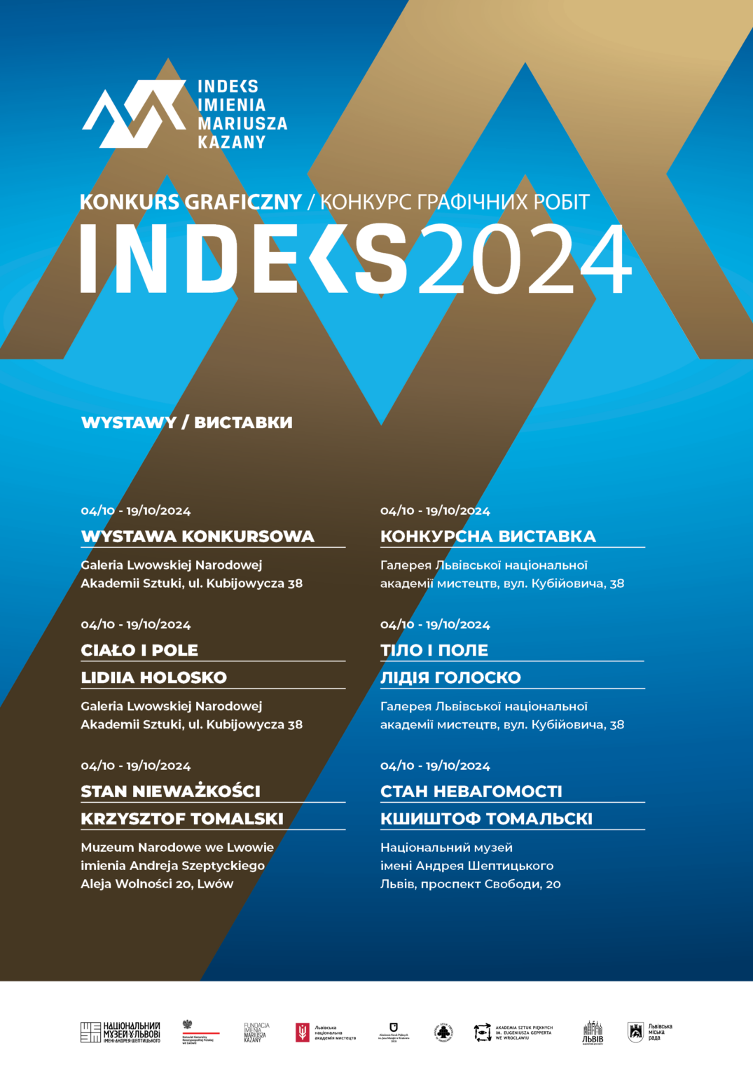 W Muzeum Narodowym we Lwowie 4 października 2024 r. ogłoszono wyniki obrad międzynarodowego Jury Konkursu „Indeks imienia Mariusza Kazany” oraz wręczono nagrody finansowe, ufundowane przez Konsulat Generalny RP we Lwowie: I miejsce Nadija Uhorczuk, II miejsce Witalina Tokarczuk, III miejsce Julia Jewtuch. Laureatka I miejsca otrzymała również zaproszenie na staż artystyczny do Akademii Sztuk Pięknych im. Jana Matejki w Krakowie.