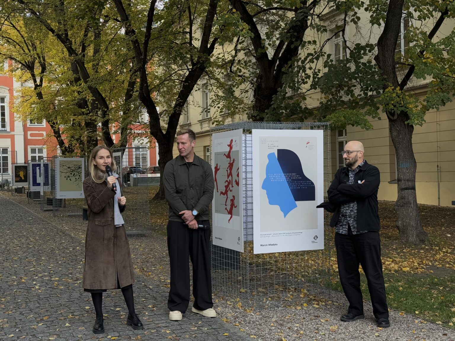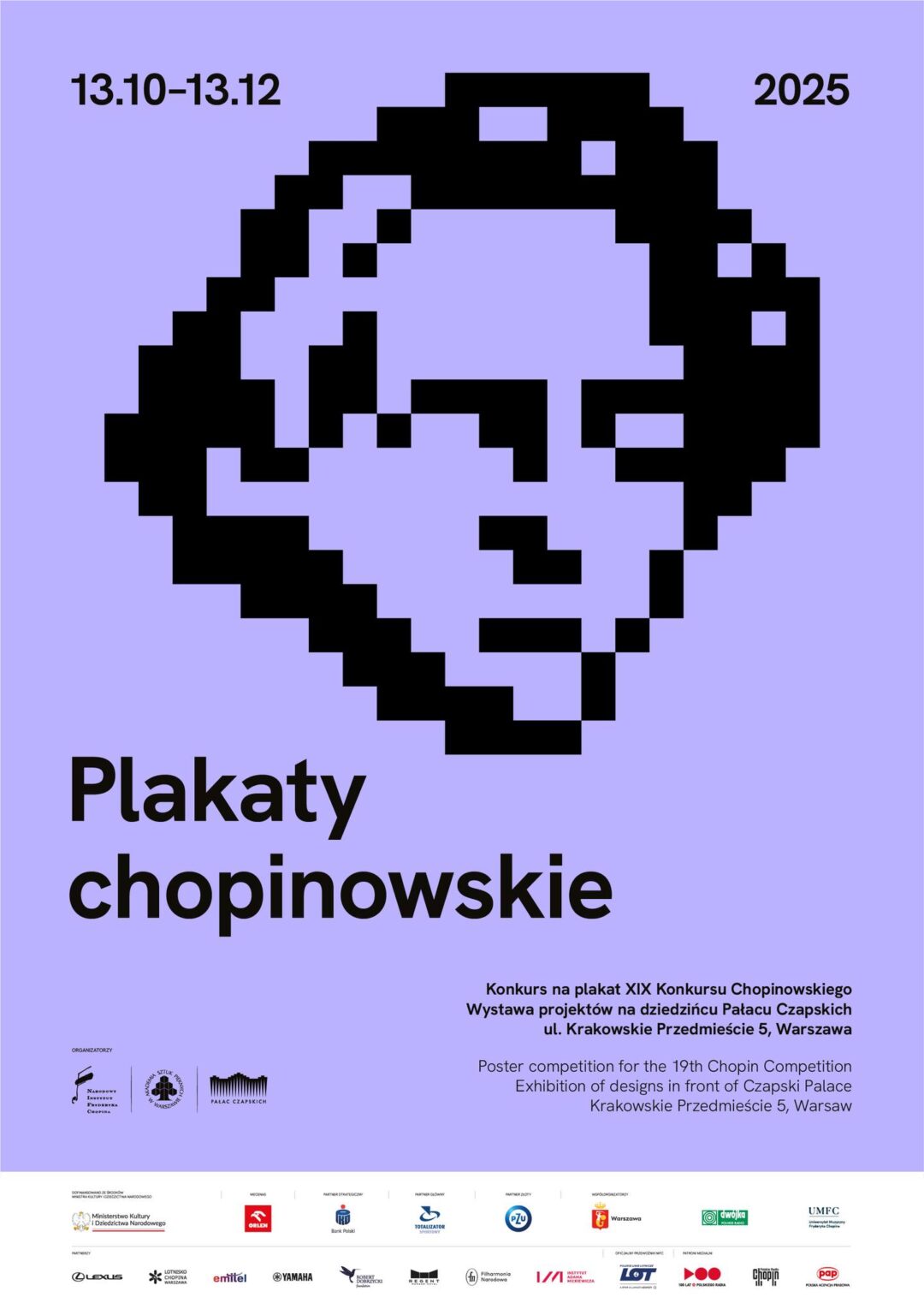 Wystawę „Plakaty Chopinowskie” można oglądać na dziedzińcu Pałacu Czapskich od 13 października do 13 grudnia 2025 roku