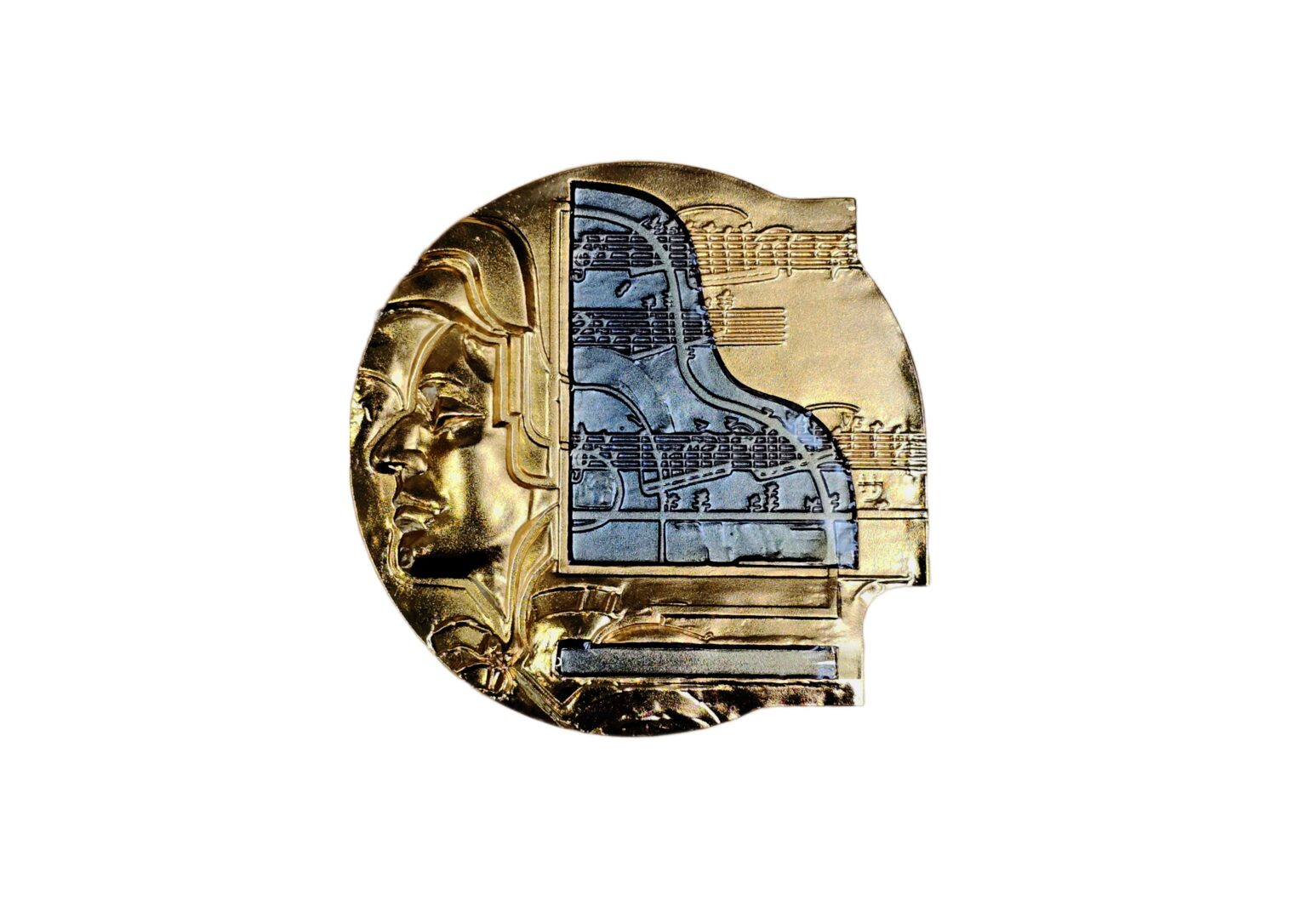 Medal upamiętniający XIX Międzynarodowy Konkursy Pianistyczny w Warszawie zrealizowany w Mennicy Polskiej. Wybity w dwóch skalach – 8×8 cm jako medal nagrodowy Konkursu (w trzech wariantach: złoty, srebrny i brązowy) oraz 7×7 cm w wersji kolekcjonerskiej. Jego kształt jest nieregularny.