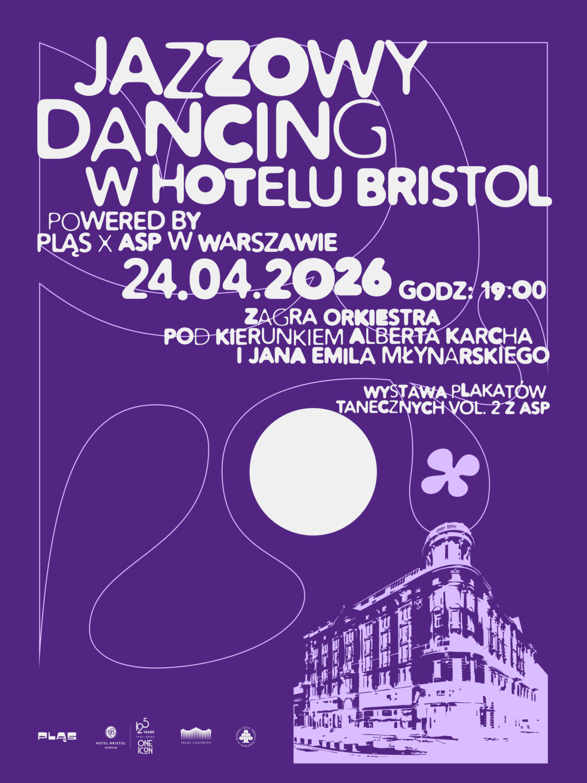 W rytmie tanga, walca, jazzu i flamenco studentki i studenci ASP w Warszawie opowiadają o tańcu jako jednej z najstarszych form bycia razem. Wystawa plakatów towarzysząca dancingowi w Hotelu Bristol jest wizualną podróżą przez źródła ruchu i zabawy – od argentyńskich portów, gdzie narodziło się tango, przez wiedeńskie sale balowe walca, afroamerykańskie korzenie jazzu, aż po andaluzyjskie, pełne ognia flamenco. Każdy z tych tańców niesie własną historię: migracji, spotkań kultur, społecznych napięć i pragnienia bliskości. Studenckie plakaty interpretują taniec jako energię wspólnoty, flirtu i dialogu – jako przestrzeń, w której emocje stają się widzialne. To opowieść o zabawie, która ma głębokie korzenie, i o ruchu, który od wieków łączy ludzi ponad językiem i granicami.