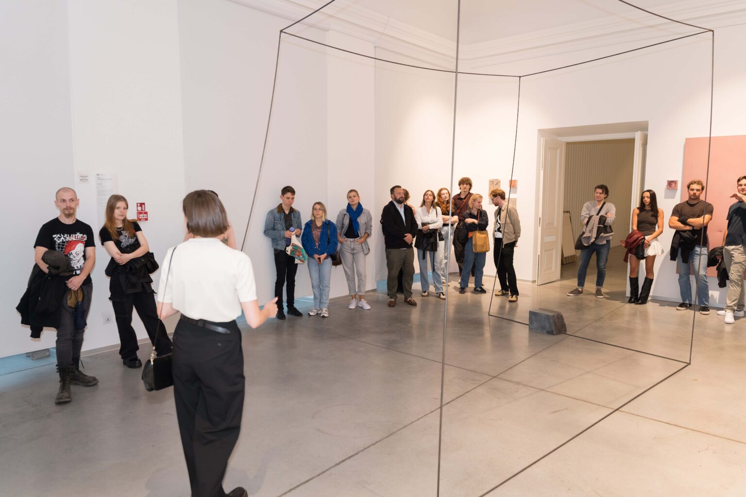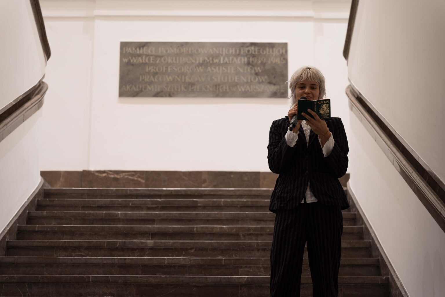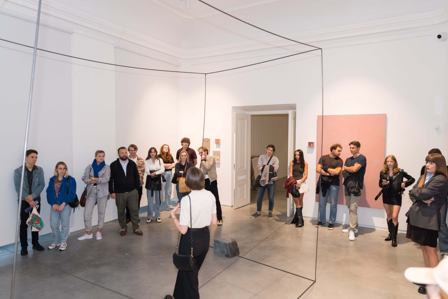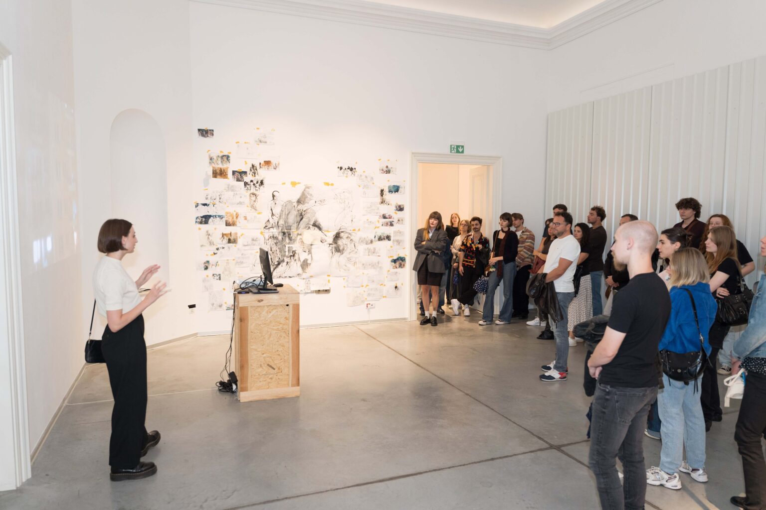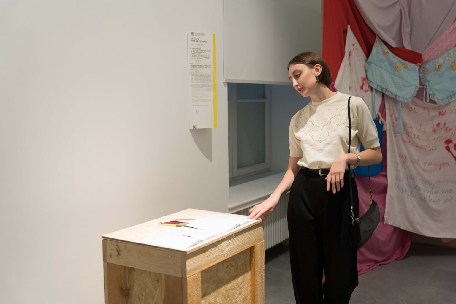 prowadzenie: Delfina Antoni – studentka Wydziału Badań Artystycznych i Studiów Kuratorskich, edukatorka w Muzeum Narodowym w Warszawie, członkini zespołu kuratorskiego wystawy „UpComing 2023. Wybrane Dyplomy ASP w Warszawie. Handle with care.”