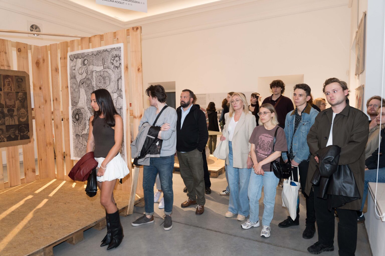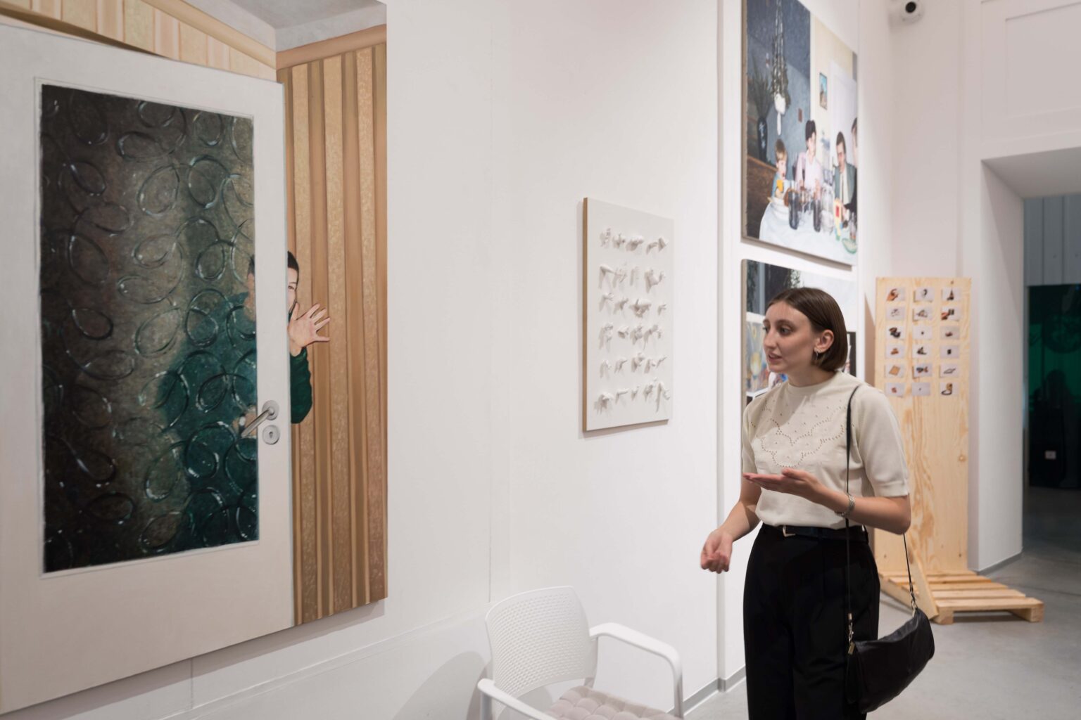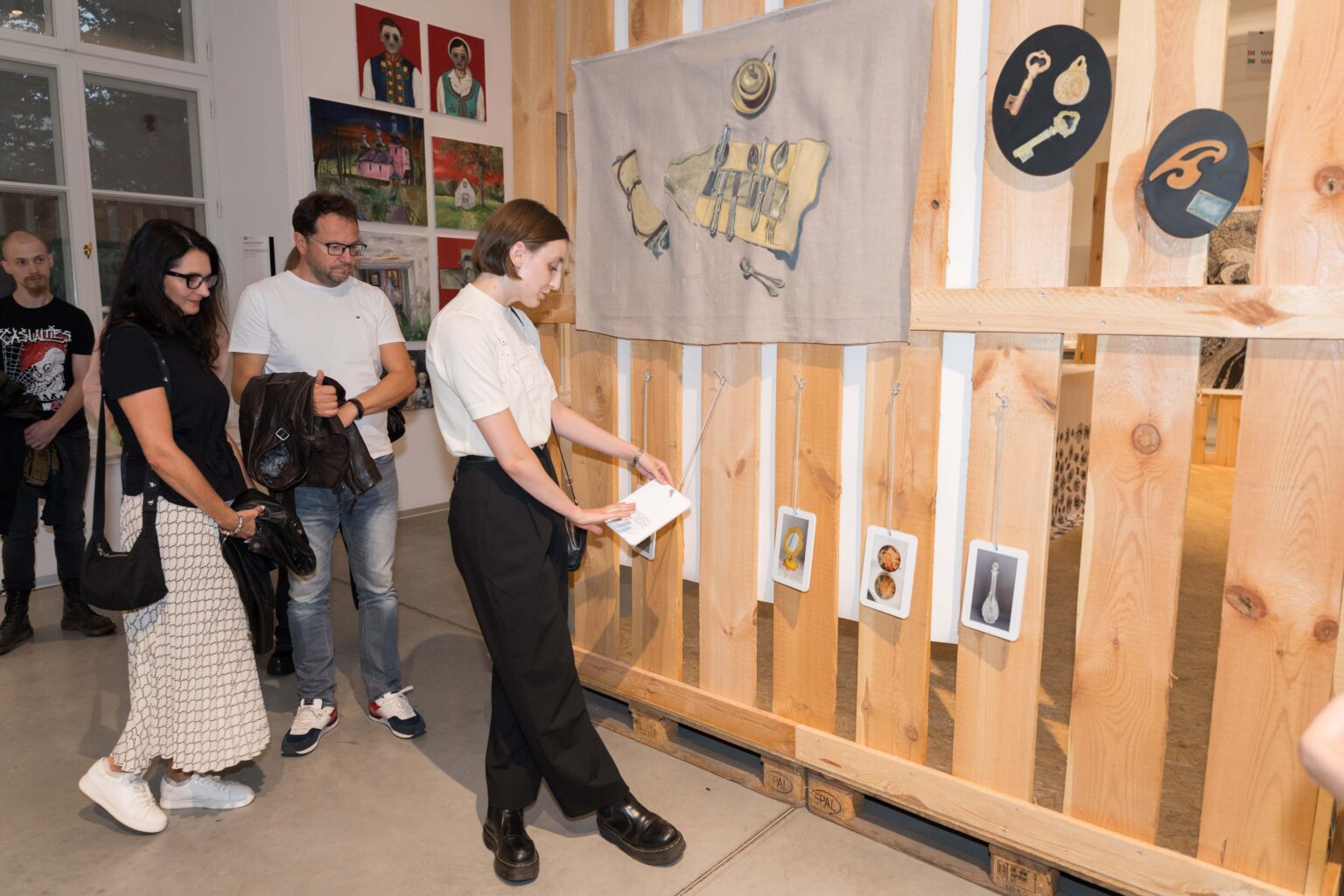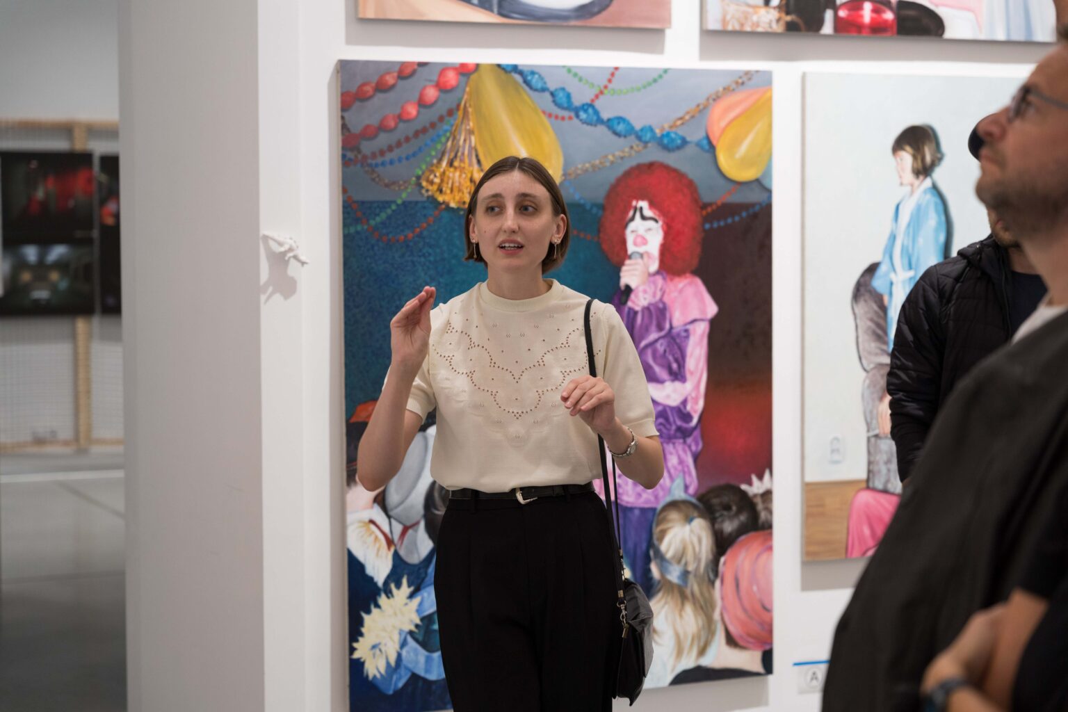 prowadzenie: Mania Schmidt – kuratorka wystawy, studentka II roku licencjatu Wydziału Badań Artystycznych i Studiów Kuratorskich ASP w Warszawie oraz współtwórczyni konińskiej fundacji ŁADNE ŻYCIE.