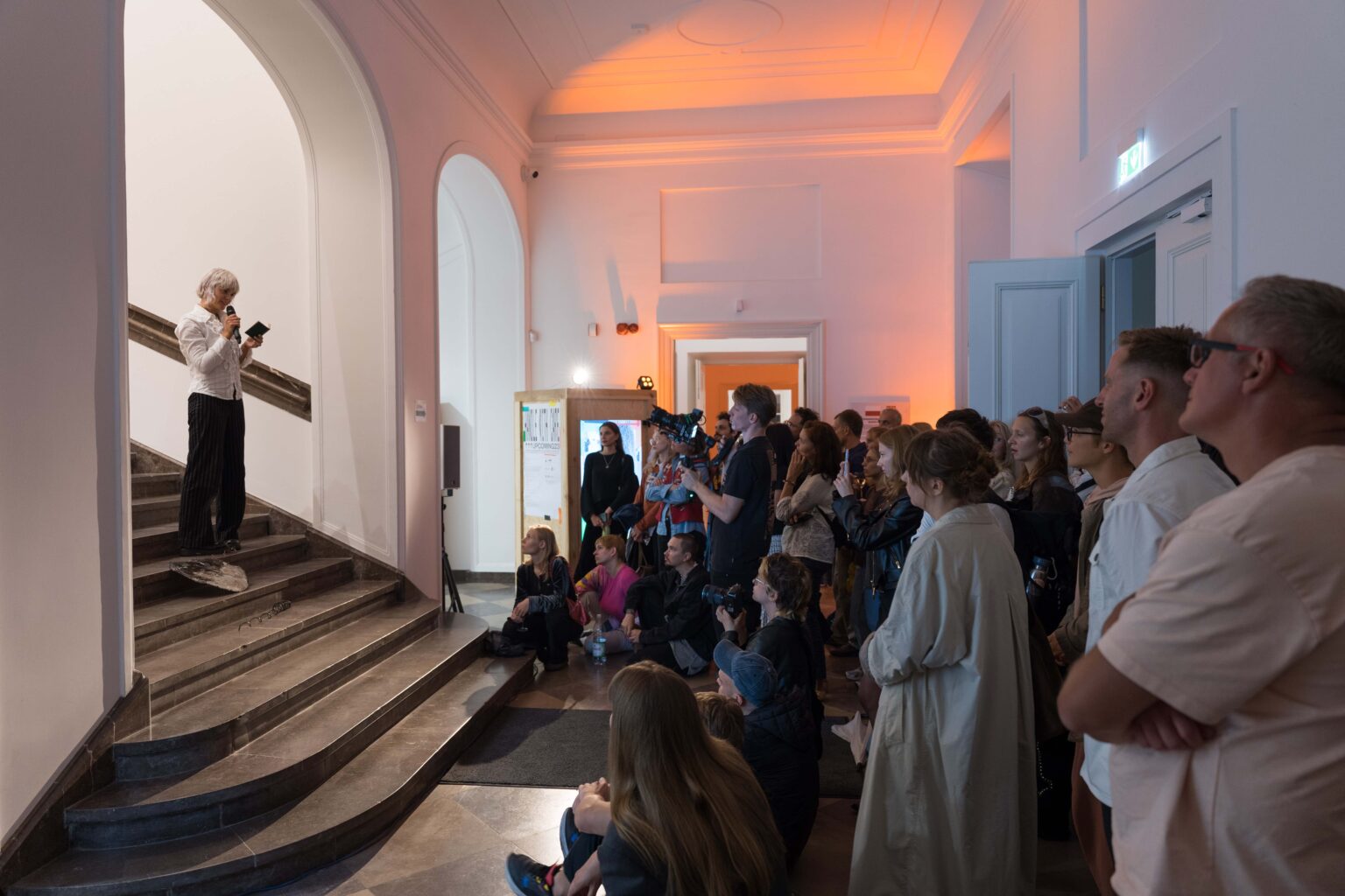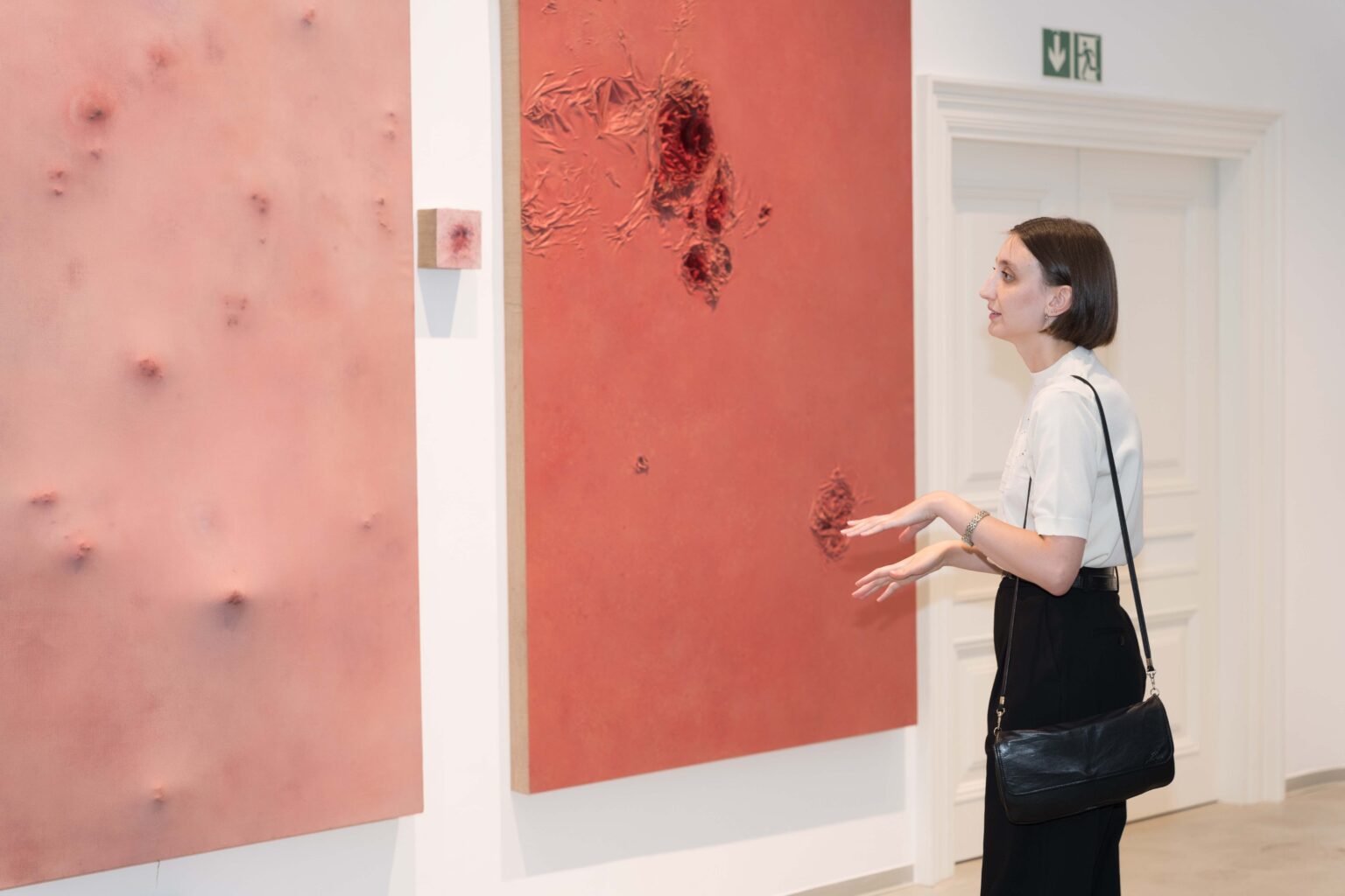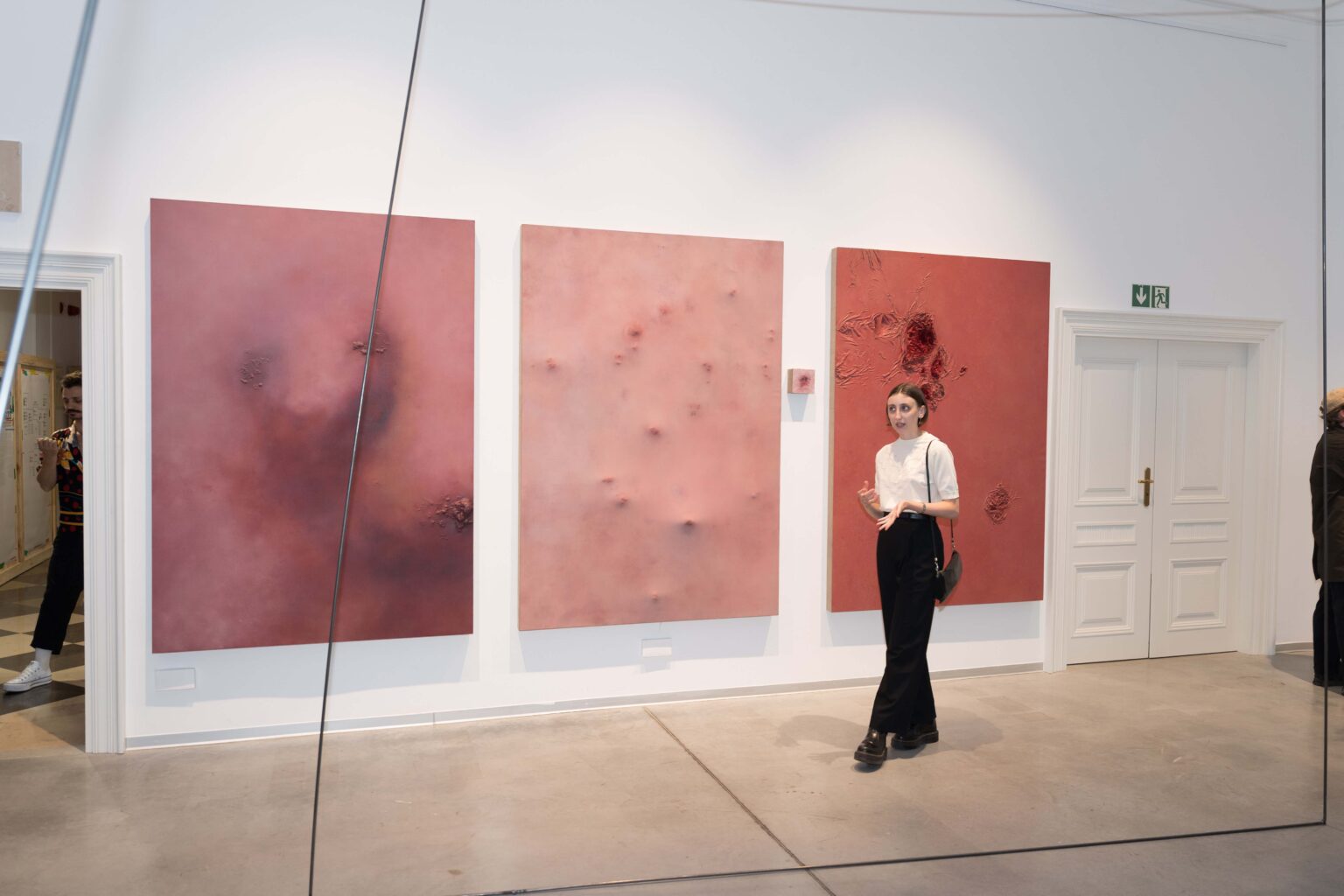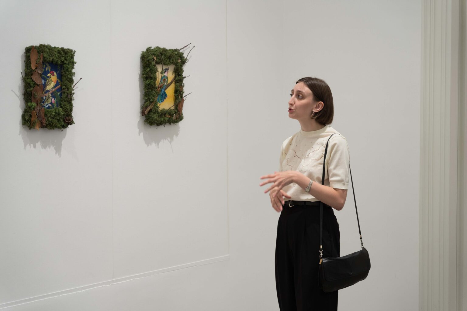 prowadzenie: Mania Schmidt – kuratorka wystawy, studentka II roku licencjatu Wydziału Badań Artystycznych i Studiów Kuratorskich ASP w Warszawie oraz współtwórczyni konińskiej fundacji ŁADNE ŻYCIE.