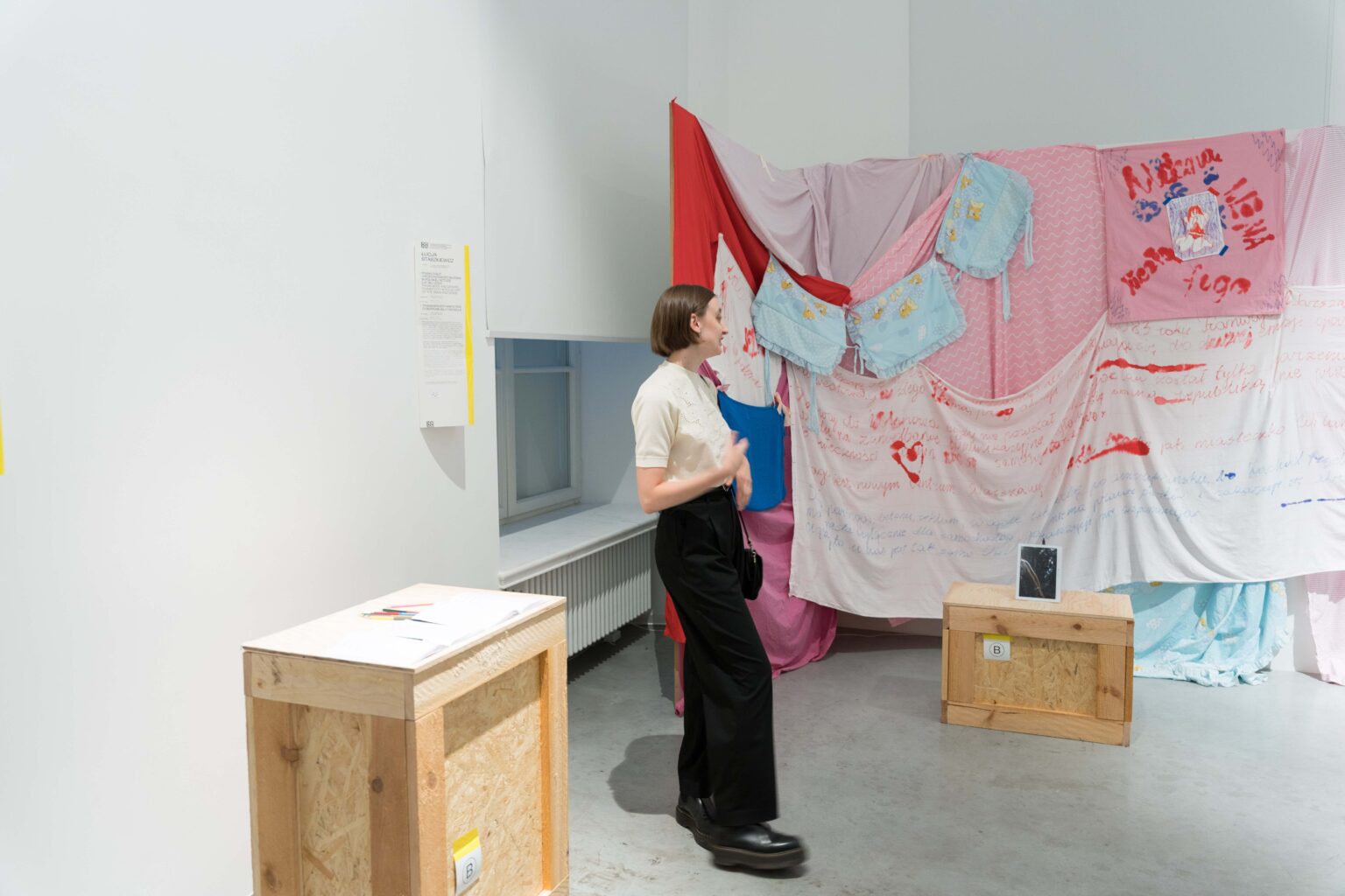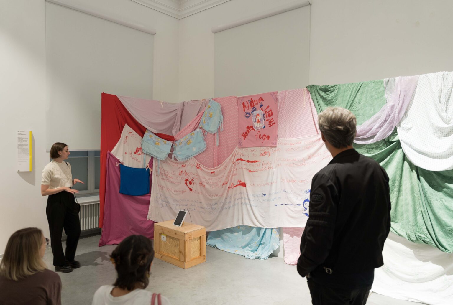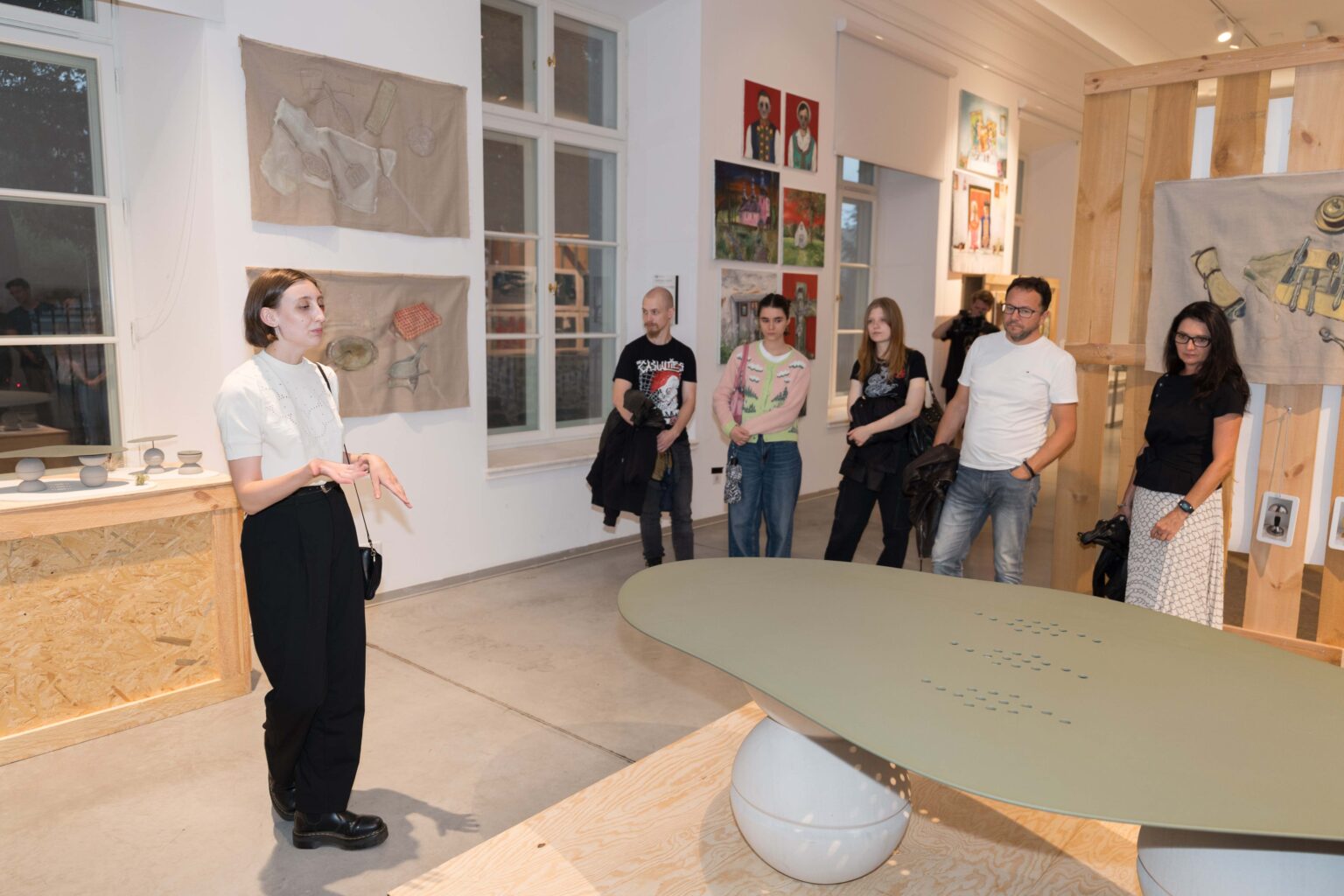 Na oprowadzaniu dowiecie się jak wyglądała praca nad wystawą, jak znaleźliśmy wspólny trop dla wybranych dyplomów ASP 2022 oraz o tym jakie zestawienia powstały w tej przestrzeni.