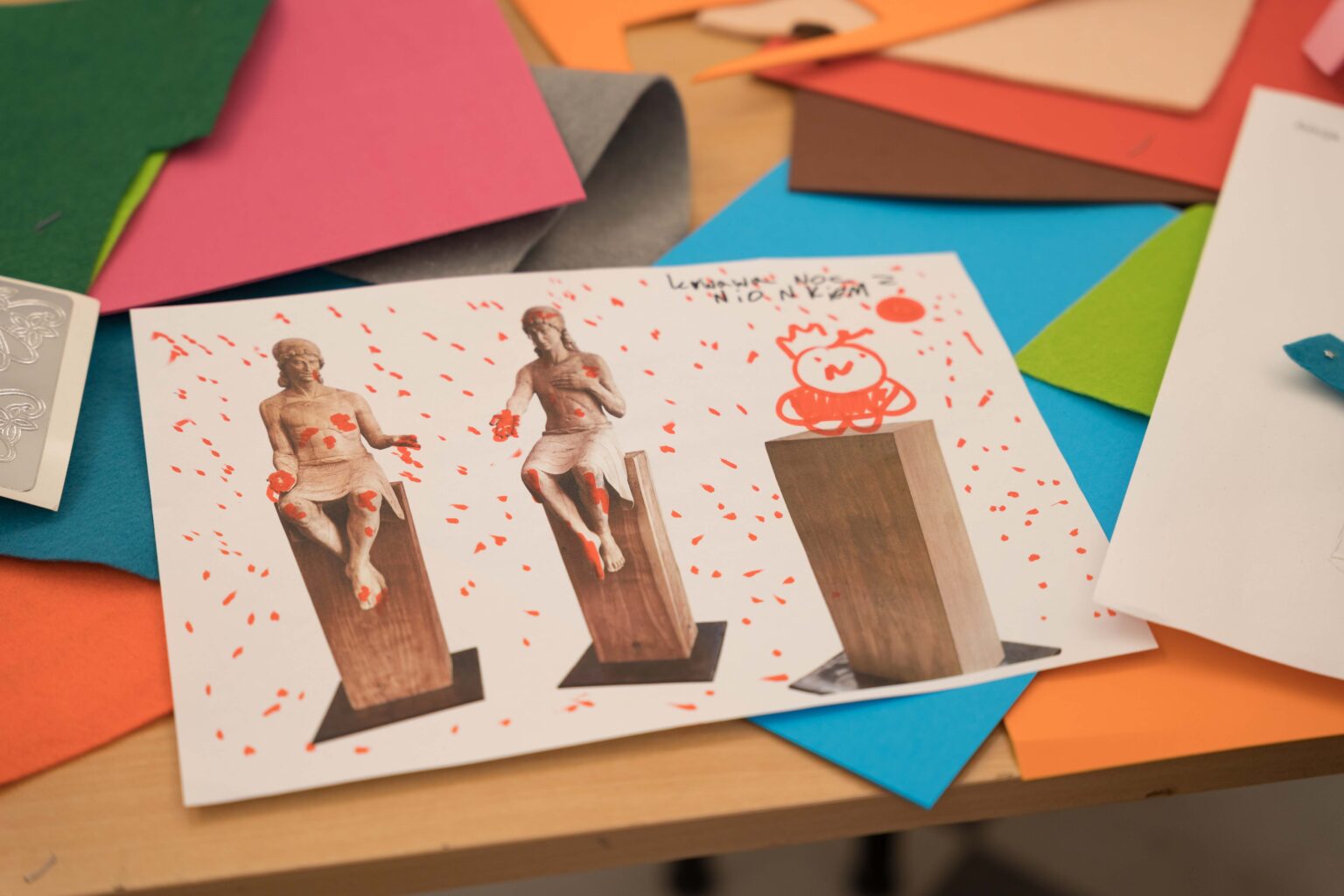 Podczas warsztatów, w oparciu o dwie prace prezentowane na wystawie „UpComing”: rzeźbę pt. „Spotkanie” Franciszka Szczepańca oraz projekty kostiumów i scenografii Mateusza Karolczuka, wspólnymi siłami stworzymy kolaże. Każda z osób uczestniczących w warsztatach stworzy własny projekt kostiumu operowego oraz nada swoje znaczenie tajemniczej kompozycji rzeźbiarskiej. Materiały potrzebne do zajęć zapewniamy na miejscu.