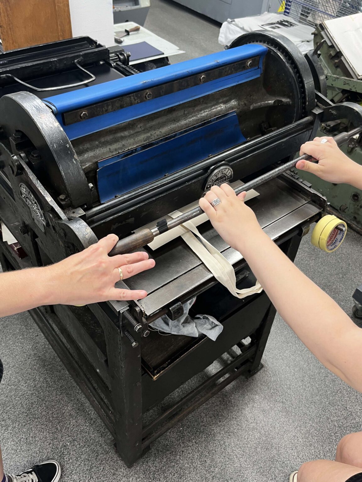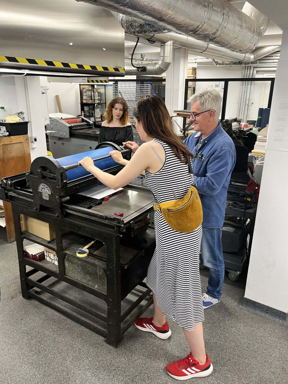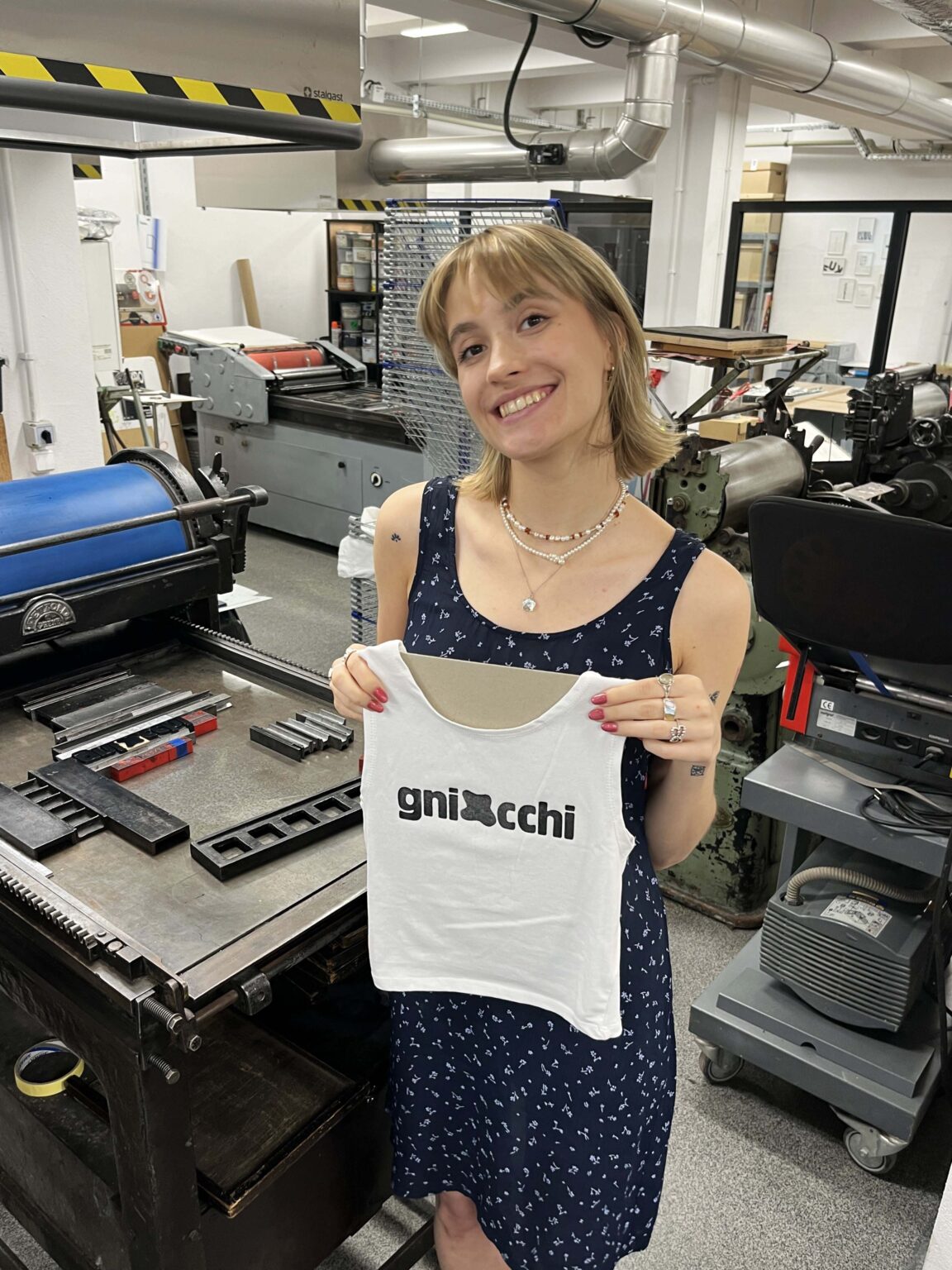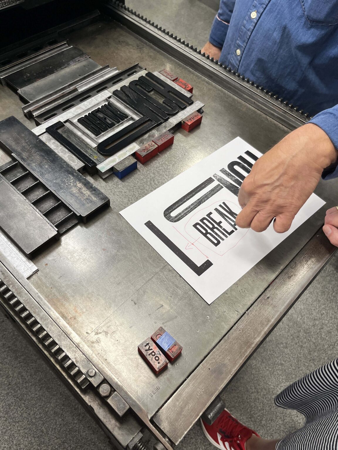 Zadanie polega na zaprojektowaniu prostego przekazu (maksymalnie jednego zdania), złożeniu składu typograficznego (z dostępnych w studio drewnianych czcionek) i odbiciu na T-shirtach przy pomocy prasy typograficznej.