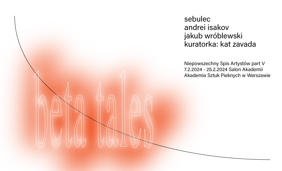Od 8 do 25 lutego 2024 w Galerii Salon Akademii będzie prezentowana piąta odsłona wystawy z cyklu „Niepowszechny spis artystów” – „Beta tales”. Sebulec / Andrei Isakov / Jakub Wróblewski. Kuratorką wystawy jest Kat Zavada.
