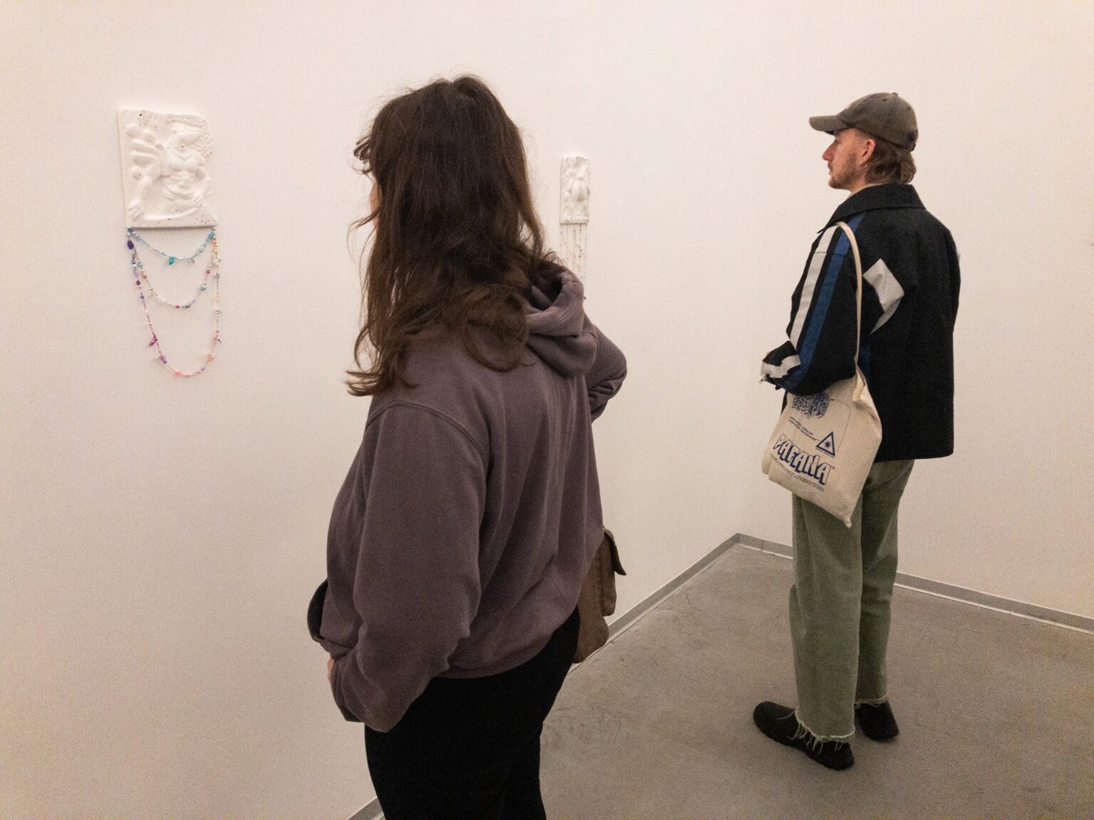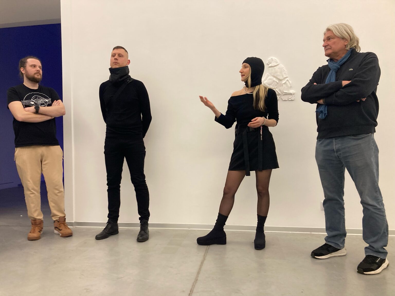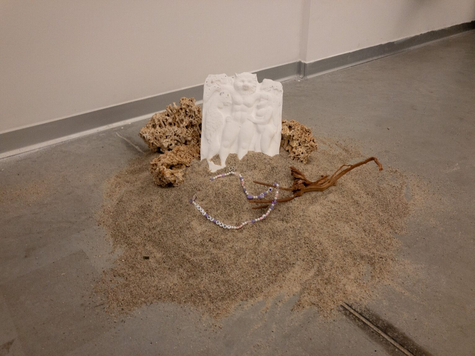 „Wróblewski snuje wizualną narrację o taktylności poprzez 18-elementową grupę rzeźbiarską stworzoną z toreb powietrznych, elastanu, lycry, próżni oraz betonu. Choć ich abstrakcyjna estetyka drwi z mojego neurotycznego poszukiwania celowości, spekuluję o ich przeznaczeniu – ergonomiczne pancerze, a może kolumnady zamknięte w chmurze z tworzywa? Obiekty powstały na bazie prototypowania wizualnego z wykorzystaniem modeli językowych takich jak: Python, TensorFlow i PyTorch, towarzyszą im projekcje z obiektami zaprojektowanymi w wyniku głębokiego uczenia” – objaśnia kuratorka wystawy.