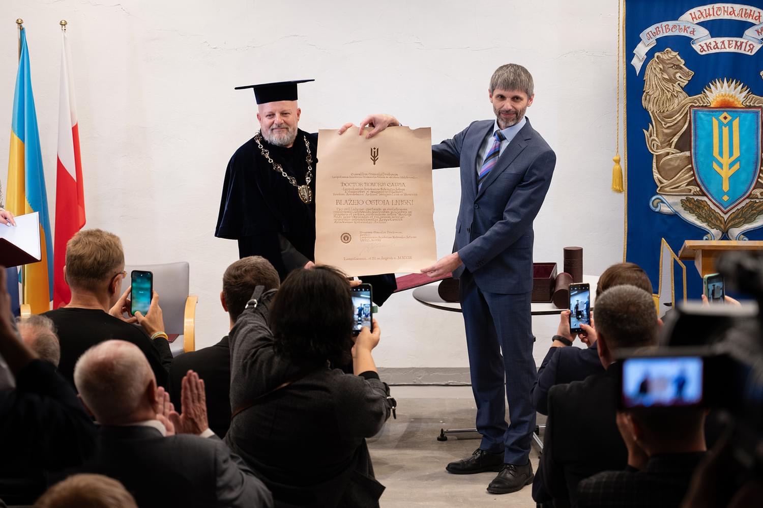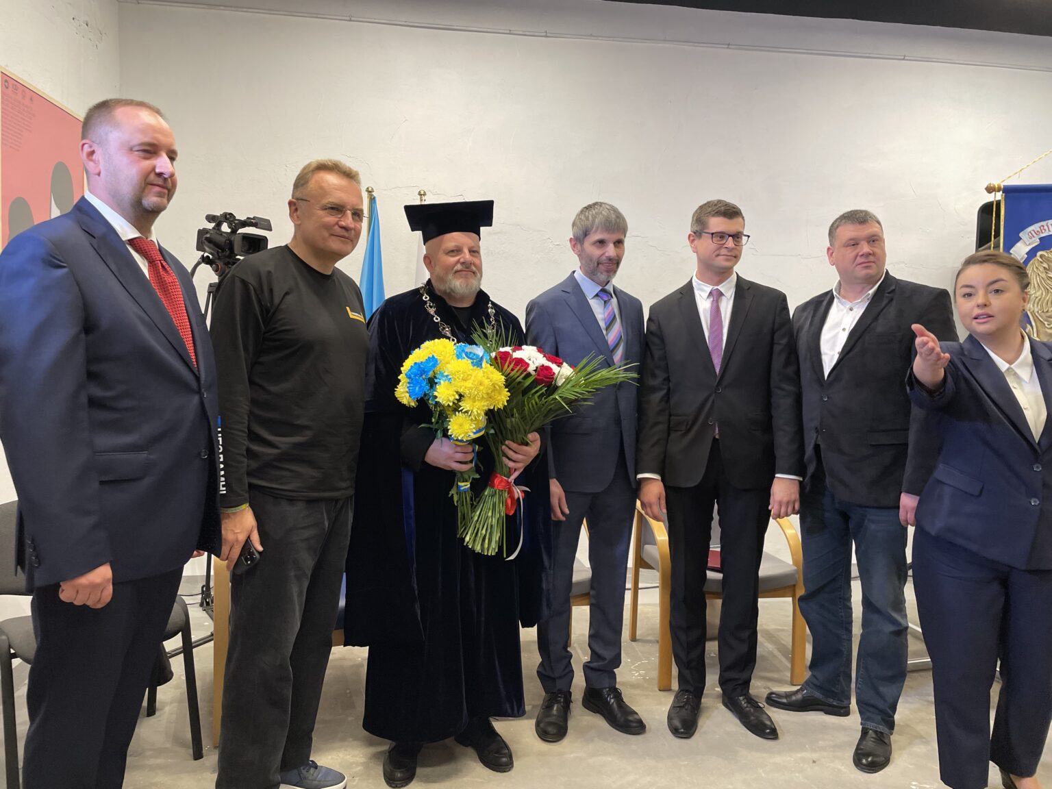 Rektor ASP w Warszawie, Błażej Ostoja Lniski uhonorowany tytułem doktora honoris causa Lwowskiej Narodowej Akademii Sztuki, Lwów, 22 października 2023. Fot. Lwowska Narodowa Akademia Sztuki