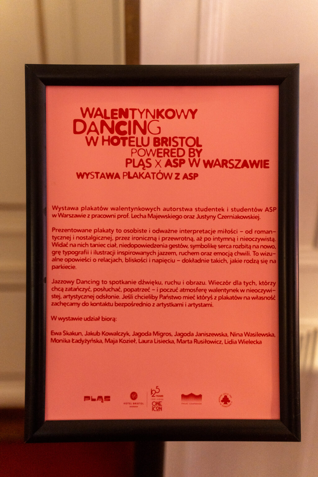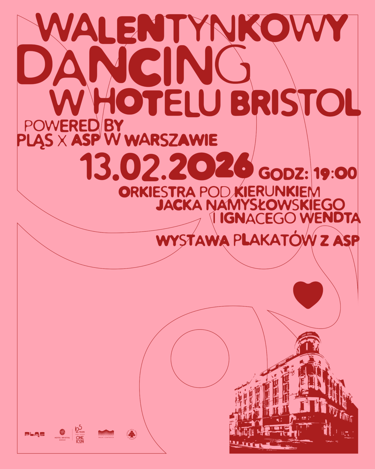 Ponadto, podczas Potańcówki w historycznej Sali Malinowej zaprezentujemy twórczość młodych artystów – studentów i studentek warszawskiej ASP. Wystawa obejmuje plakaty walentynkowe powstałe w pracowni prof. Lecha Majewskiego oraz Justyny Czerniakowskiej.