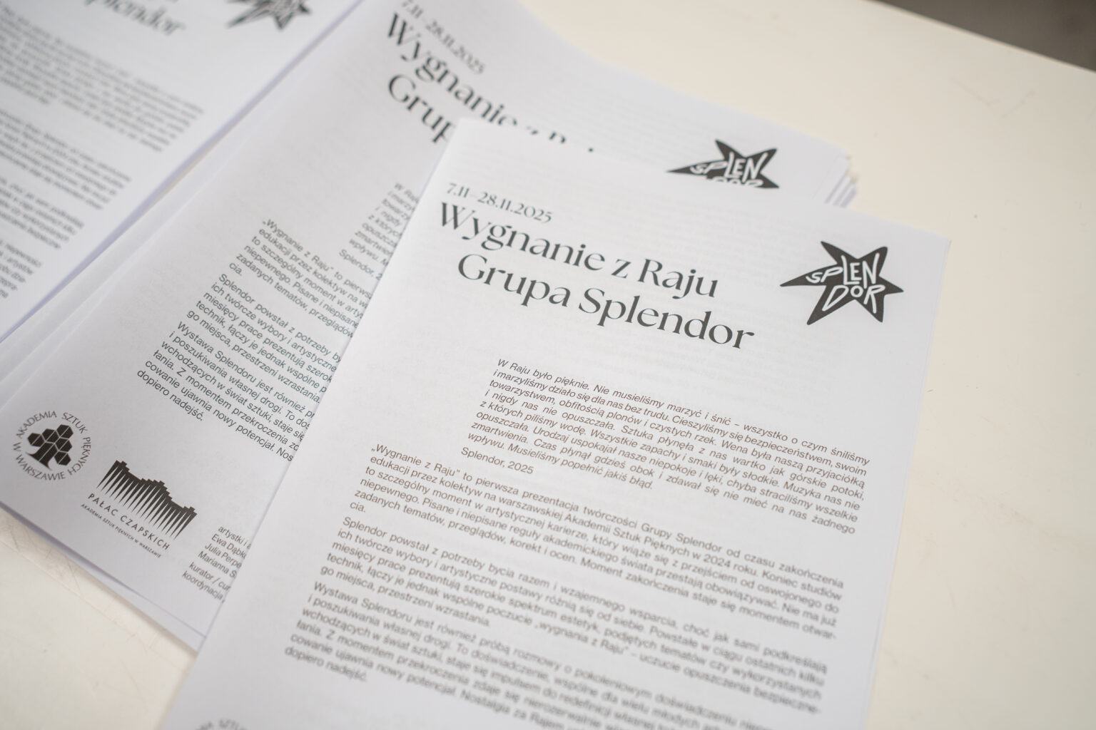 To pierwsza prezentacja twórczości Grupy Splendor od czasu zakończenia edukacji przez kolektyw na warszawskiej Akademii Sztuk Pięknych w 2024 roku. Koniec studiów to szczególny moment w artystycznej karierze, który wiąże się z przejściem od oswojonego do niepewnego. Pisane i niepisane reguły akademickiego świata przestają obowiązywać.