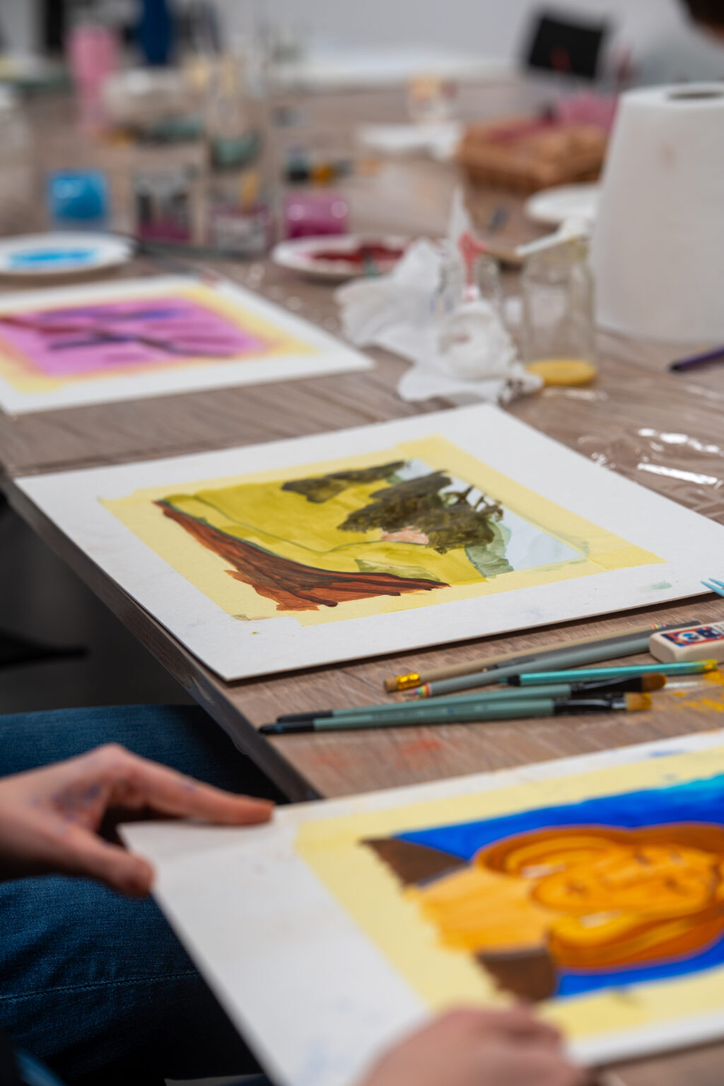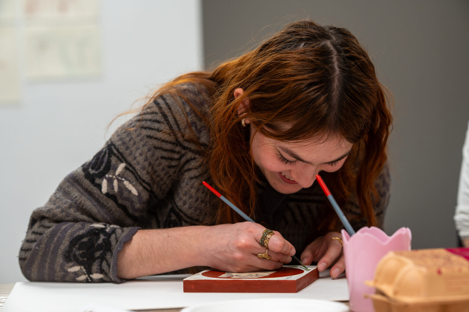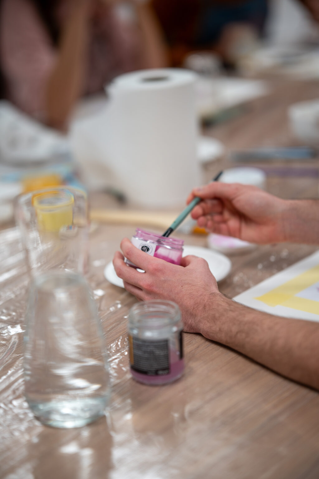 Marianna, Andrzej i Ewa wprowadzą Cię w ulubioną technikę malarską większości Splendoru – temperę żółtkową, pozwalając samodzielnie przygotować emulsję i pracować z pigmentami.