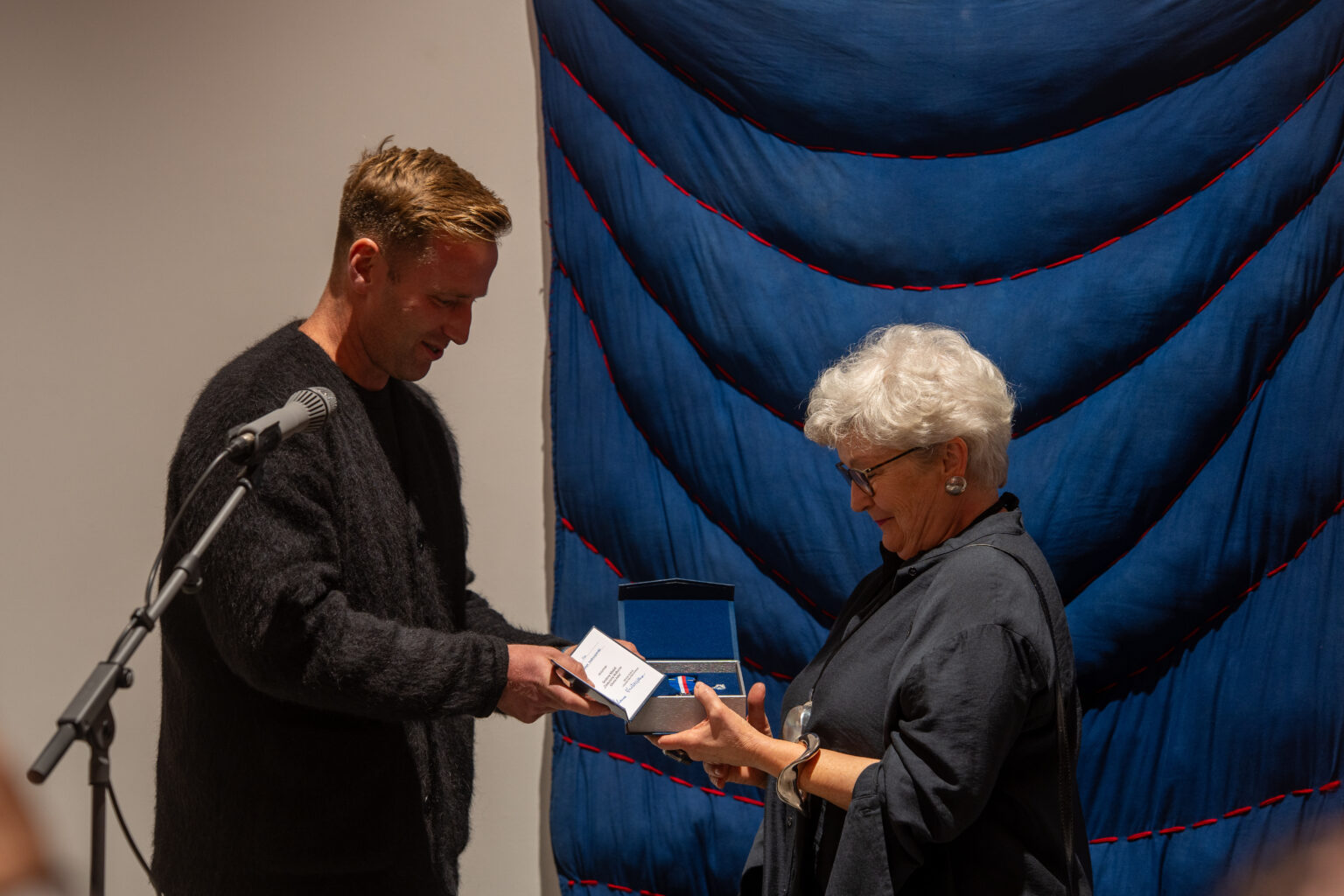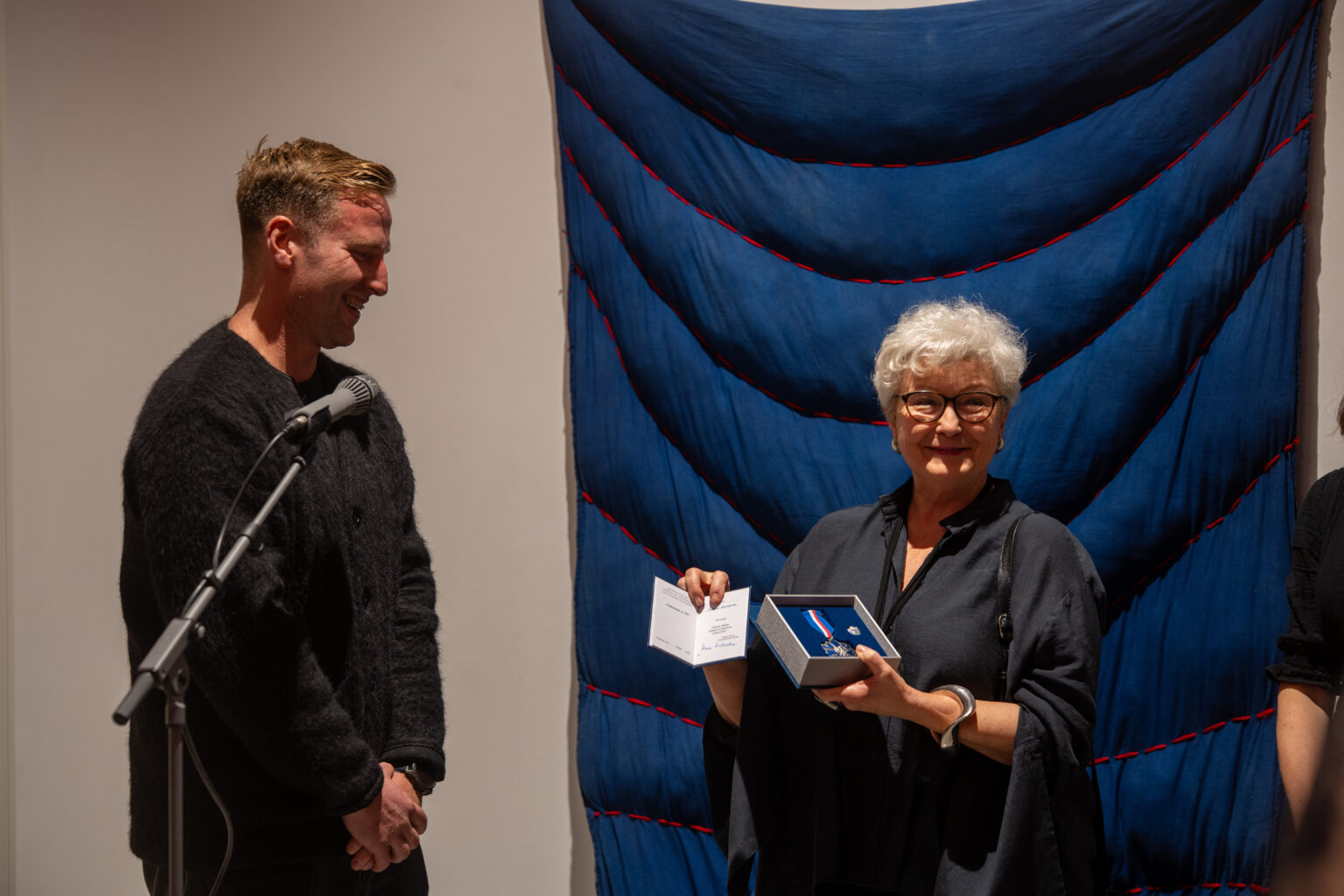 Profesor Stanisław Andrzejewski – artysta, poeta, pedagog. Jeden z pionierów współczesnej tkaniny artystycznej w Polsce. Jego twórczość, zakorzeniona w klasycznym warsztacie tkackim, konsekwentnie przekracza granice medium, zmierzając ku formom przestrzennym i instalacyjnym: tkaninę traktuje jako pełnoprawny język sztuki – cichy, skupiony zapis niosący sens.