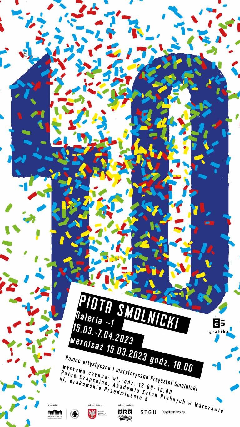 Od 15 marca 2023 w Galerii -1 w Pałacu Czapskich będzie można oglądać wystawę „40” z okazji jubileuszu czterdziestolecia pracy twórczej prof. Piotra Smolnickiego – artysty i pedagoga na Wydziale Grafiki Akademii Sztuk Pięknych w Warszawie. Wpisana w obchody 55-lecia Wydziału Grafiki wystawa prezentuje prace z ostatnich dwudziestu lat twórczości artysty i potrwa do 7 kwietnia 2023. Tematem powtarzającym się w prezentowanych na wystawie „40” pracach prof. Piotra Smolnickiego jest czas, przemijanie oraz pamięć. Drukowane na powierzchniach lustrzanych grafiki są – z perspektywy odbijającej się w nich osoby – swoistym zatrzymaniem czasu, a następnie zniknięciem i pojawieniem się nowej postaci. Pracom przyświeca motto zaczerpnięte z „Rozmyślań” M. Aureliusza: „Czas jest rzeką nieodwracalnym strumieniem rzeczy i zdarzeń. Kolejne rzeczy pojawiają się i przemijają, a na ich miejsce przychodzą następne tylko po to aby także przeminąć”.